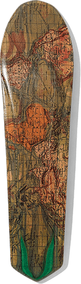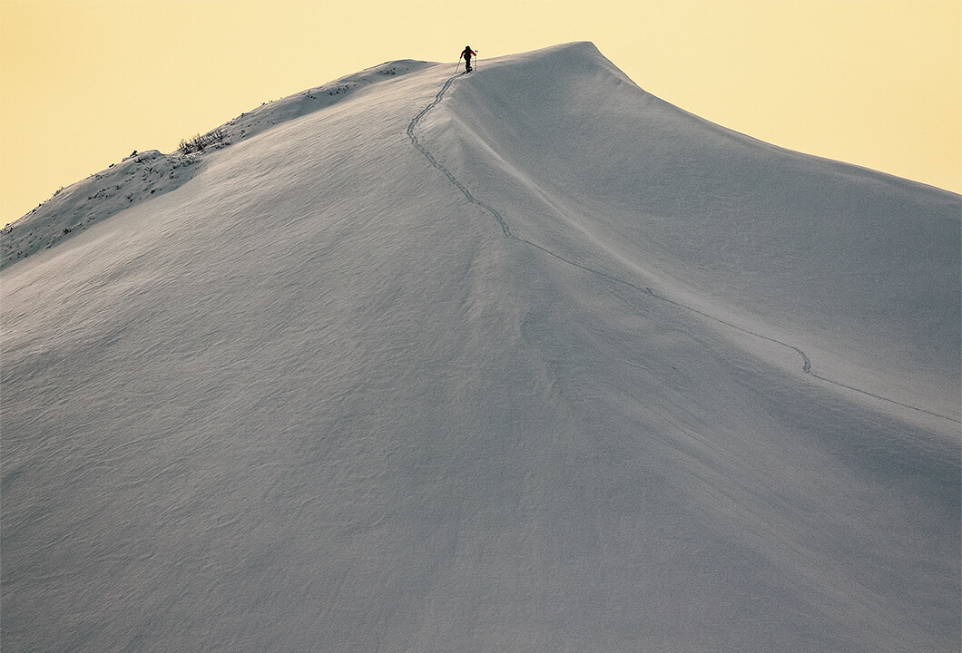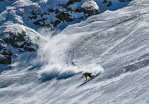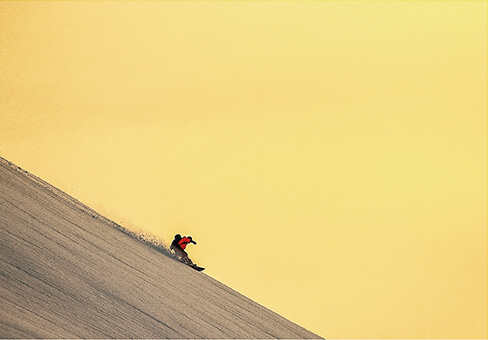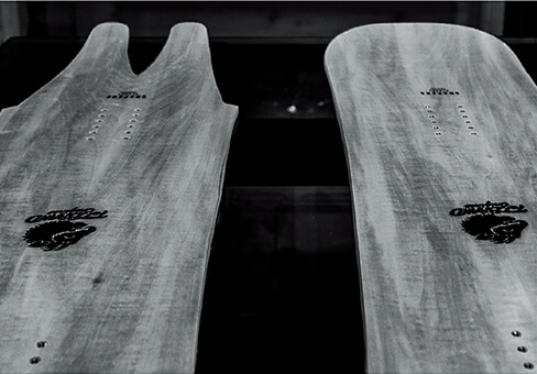 遊びココロに溢れ、古き良きモノと今を繋ぐネオクラシカルでデザイン性の富んだパウダーボードは、TJ BRANDのライダーでありながら、マウンテンハードウェアのアスリートでもある、佐久間洋氏による作品。大海原を自在に泳ぐハイブリットな動きにも注視したい。