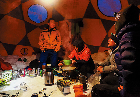 本格的なバックカントリーヘのアクセス&ステイに適した50Lのバックパック。腰ベルトや背面のフレームシートは取り外しが可能で、シーンによって使い分けができる。アックスループやアイゼンポケットを配し、登攀を伴うトリップにも対応。