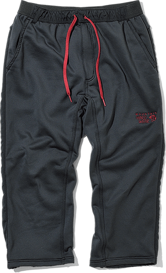 雪面からの冷えを防ぐ為、腰部分に戦略的に布帛を配置したフリースパンツは、スノーブーツと干渉しない膝下丈が特徴。雪上での保温ウェアとしてだけでなく、山小屋でのチルスタイルにも最適。