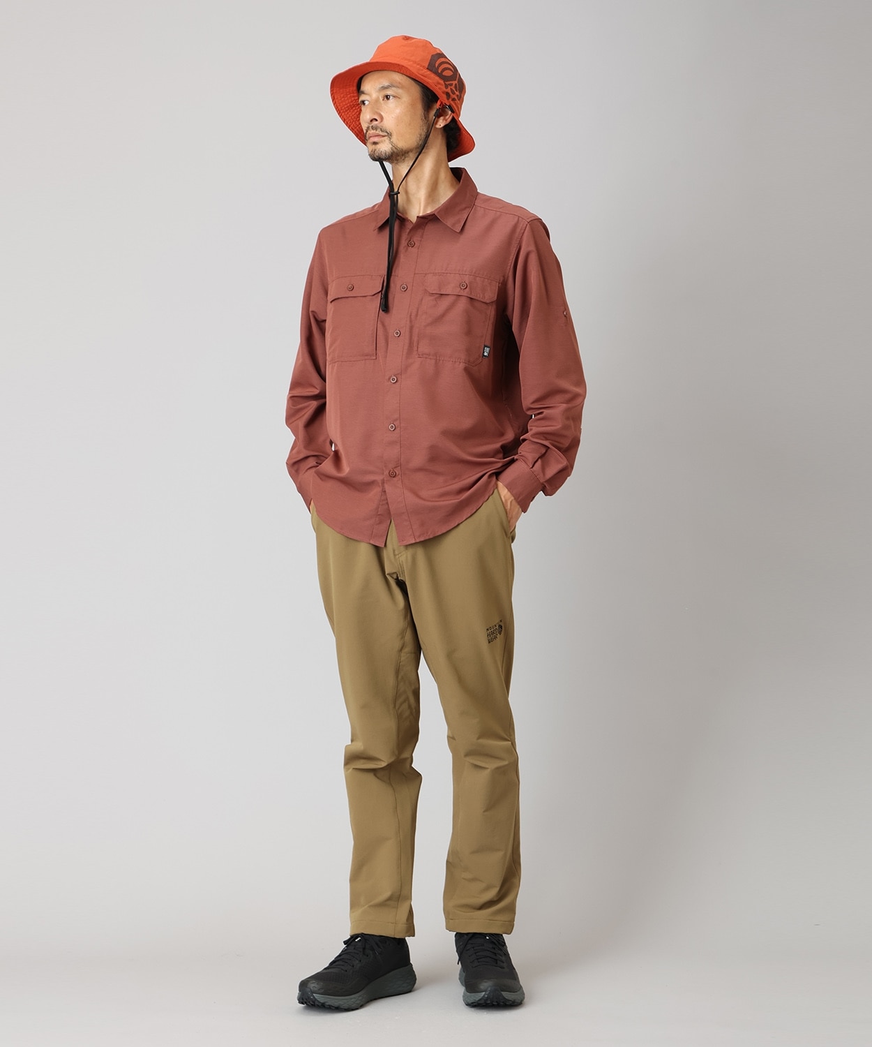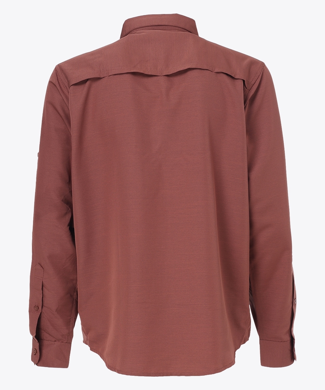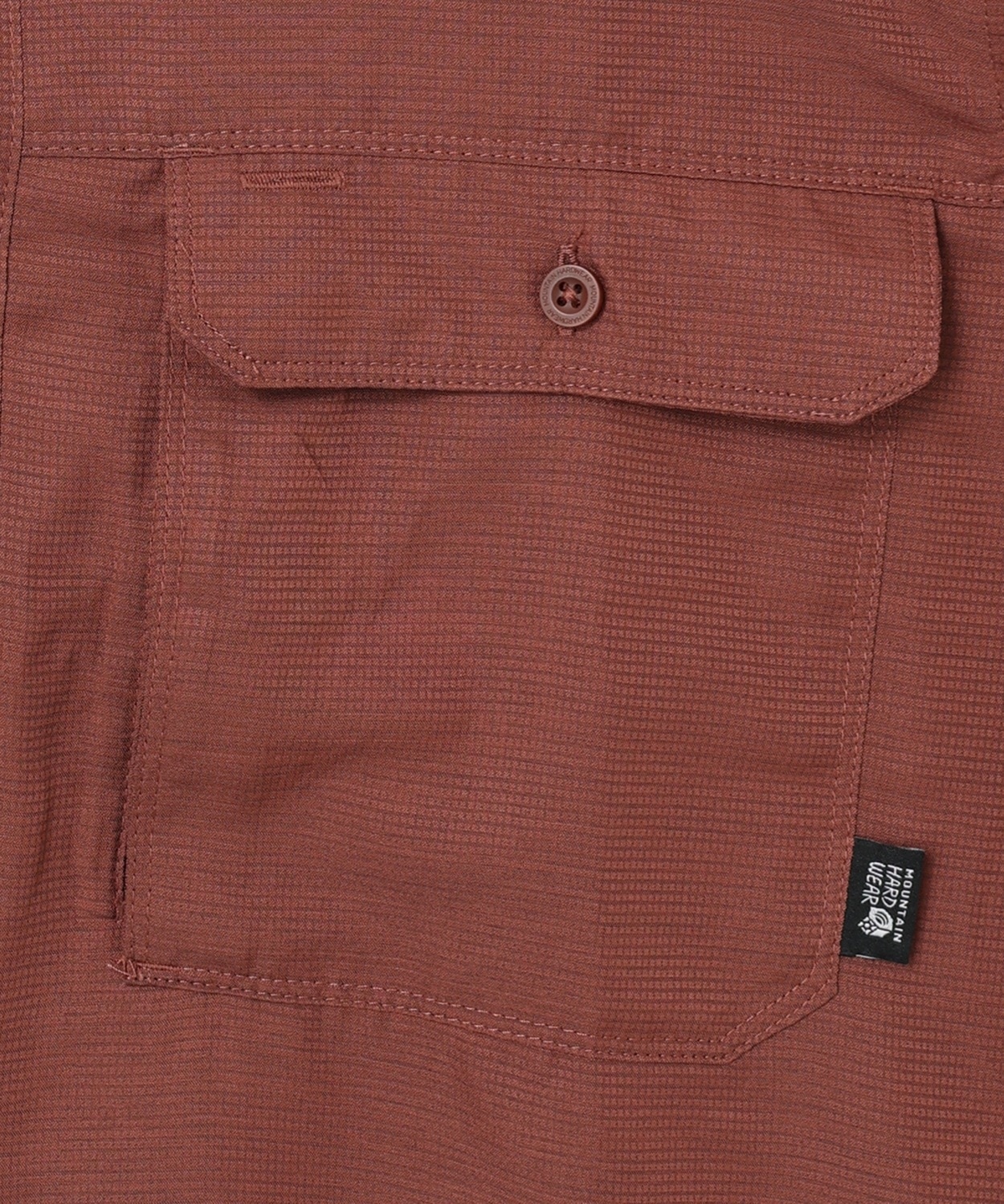 袖をロールアップできる山シャツのベストセラー。吸湿速乾性に優れたポリエステル素材でサラリと着られ、薄手なのでロールアップしてもごわつきません。ファスナー付きのチェストポケットはコアベントとしても機能するので、発汗量が多い登山にも最適です。