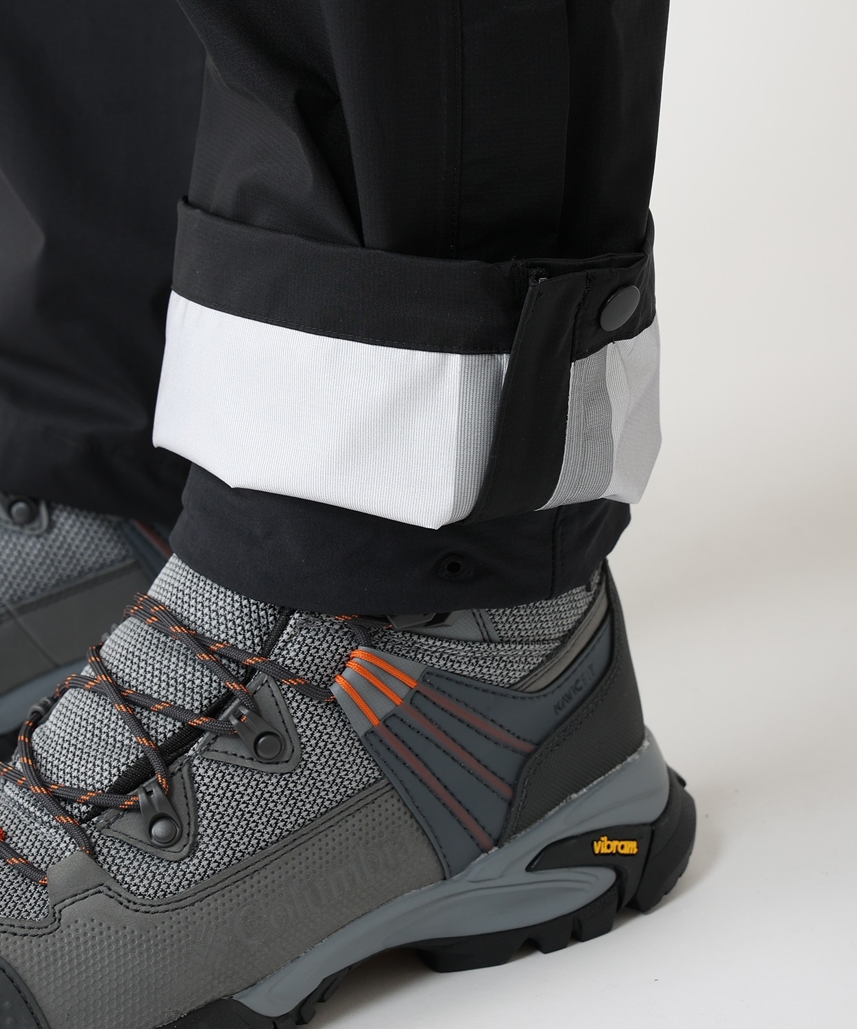 ●シューズのボリュームに合わせて裾を絞れるスナップボタン