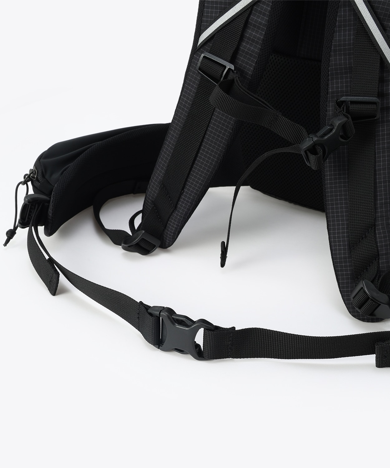 ●吸湿メッシュを使った取り外しと高さ調整が可能なウエストベルト