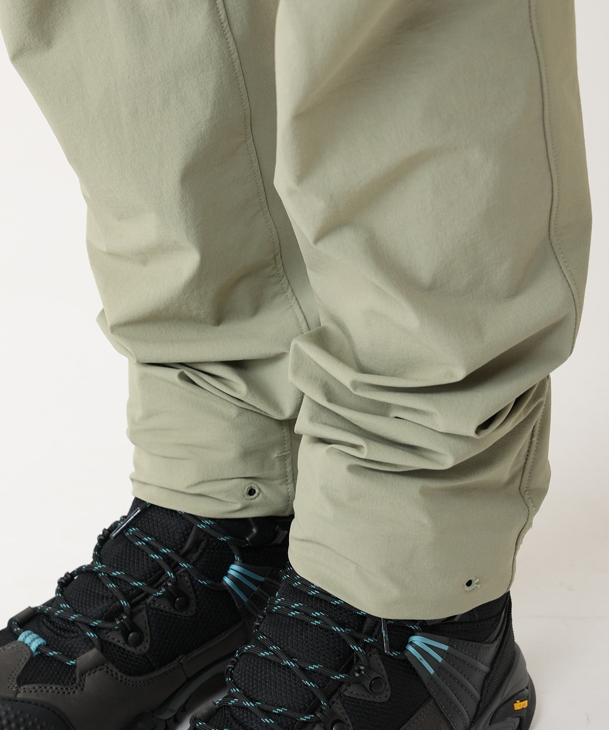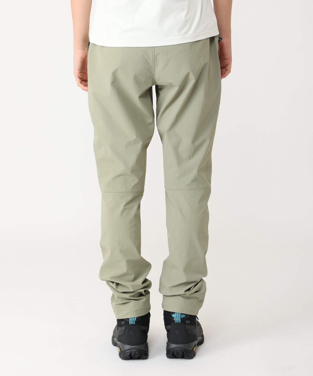 ナイロンとポリウレタンの混紡素材を使用し、軽量で耐摩耗性の高い4ウェイストレッチ素材を採用したソフトシェルパンツです。動きやすさと耐久性を両立させ、高い機能性でアルパインクライミングにも対応します。ディテールまで山での使いやすさにこだわった一枚。二重織りの構造で肌離れしやすく、快適な着用感が持続します。