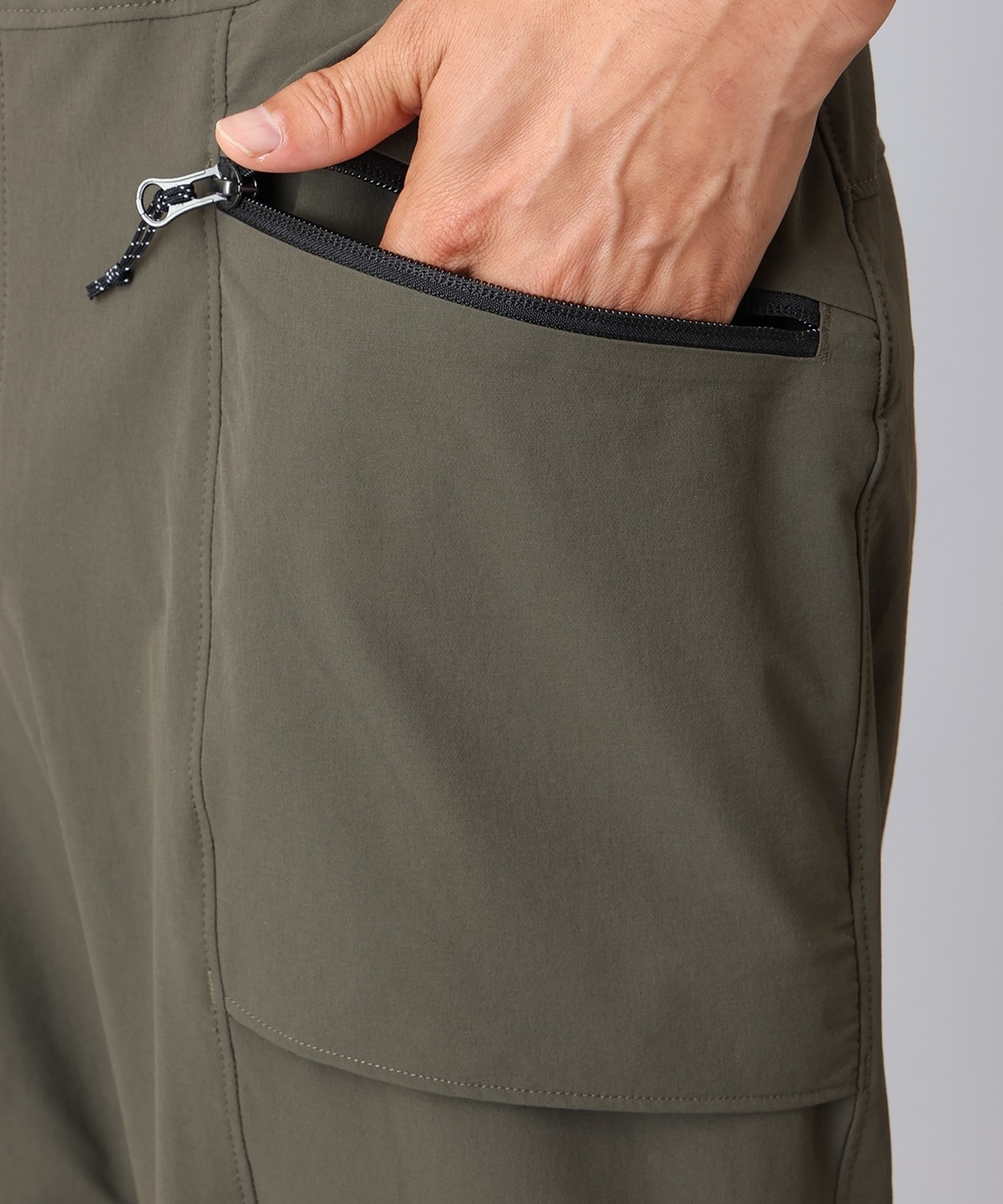 ●大腿部のファスナー式ポケットにはギア整理に便利なゴムバンドとループを内蔵