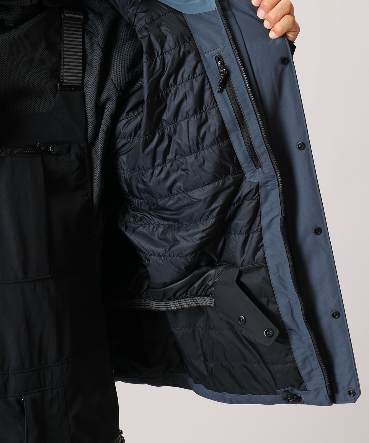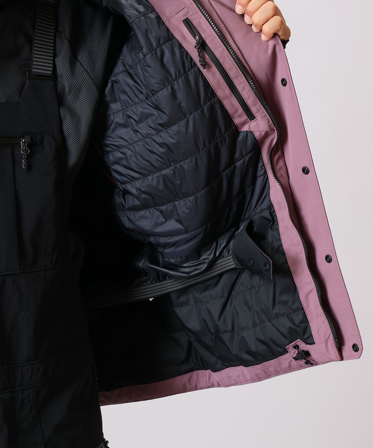 ●ジャケットとパンツを一体化する内部パウダースカート