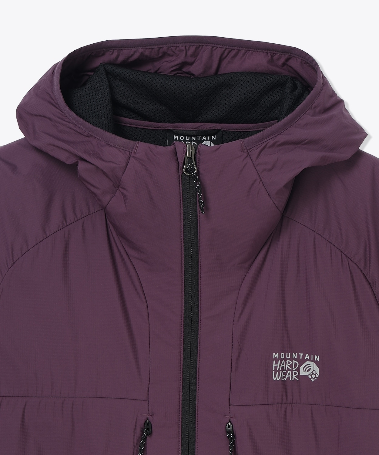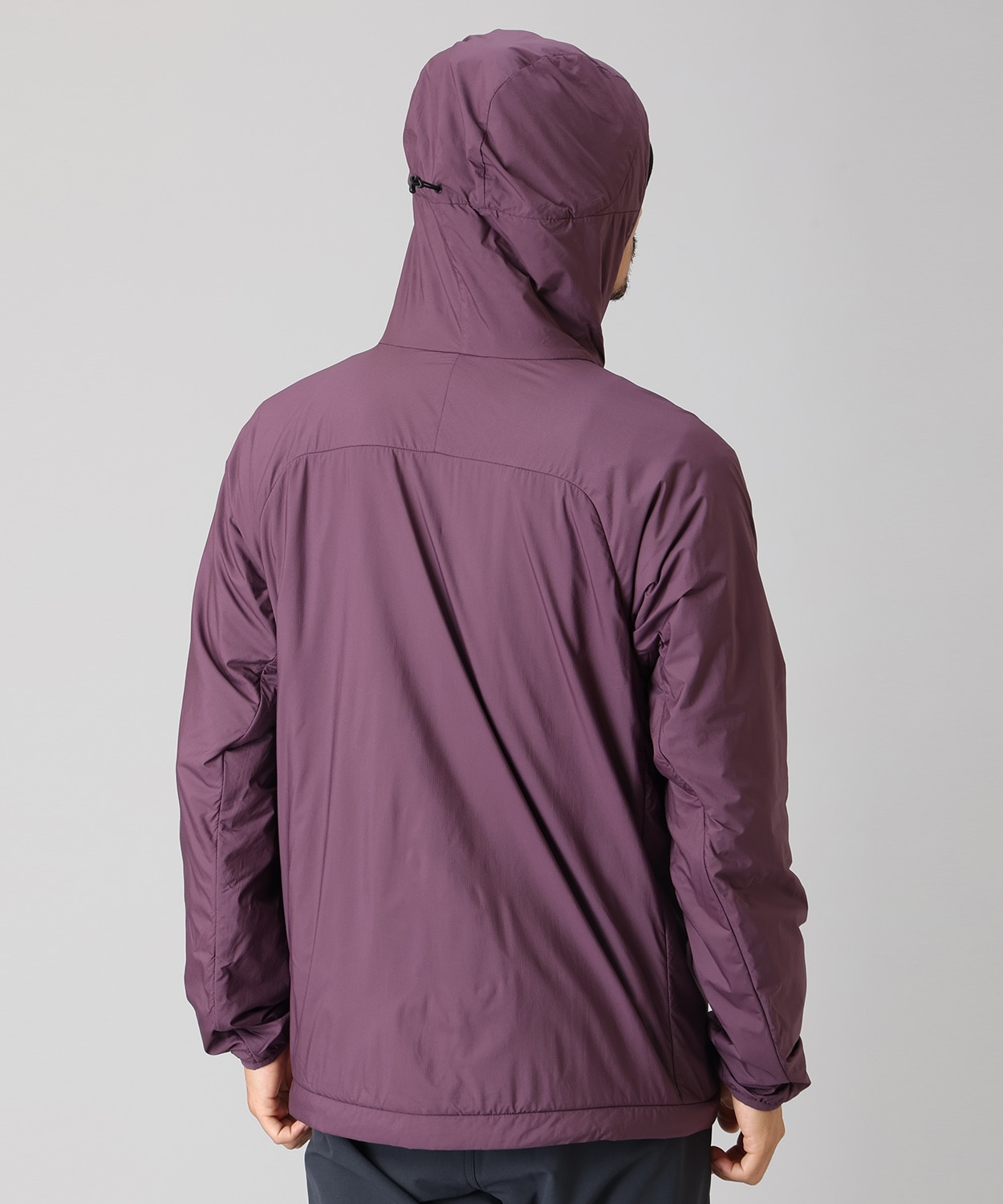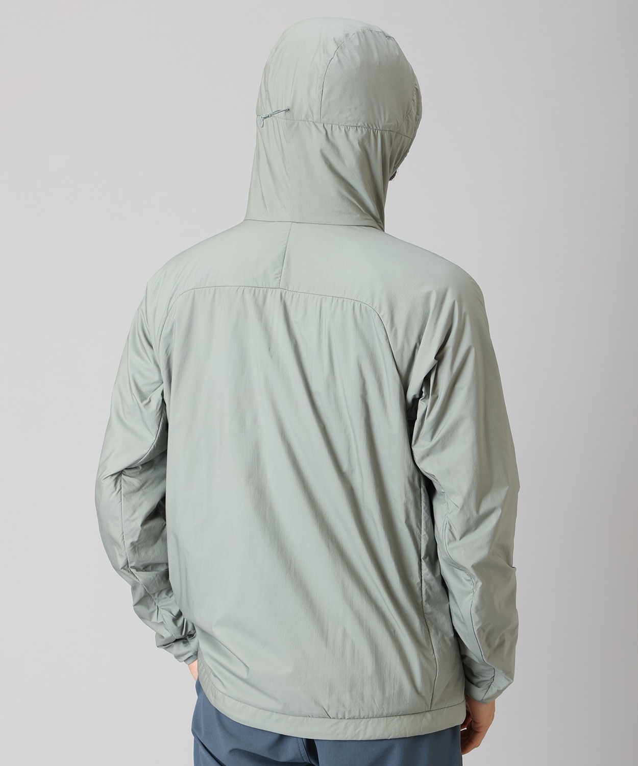 軽量、かつ防風性と通気性に優れたストレッチリップストップ素材Pertex QuantumAirの表地に、適度な保温性と通気性を備えた帝人「オクタ」の裏地を組み合わせました。メッシュ地と起毛面を持つオクタの裏表を使い分け、バックパックで蒸れやすい部分の通気を高める工夫を施しています。アクティブなシーンでもオーバーヒートしにくく、肌寒い日の登りや稜線での保温着として通年で活躍します。