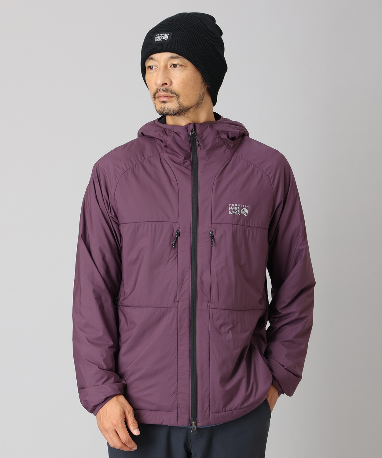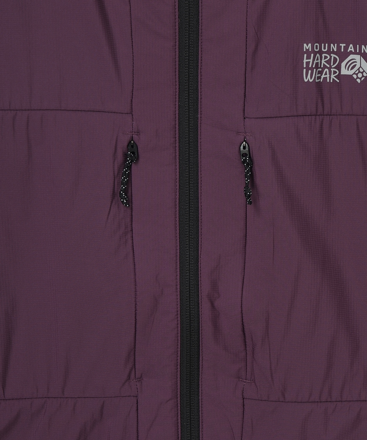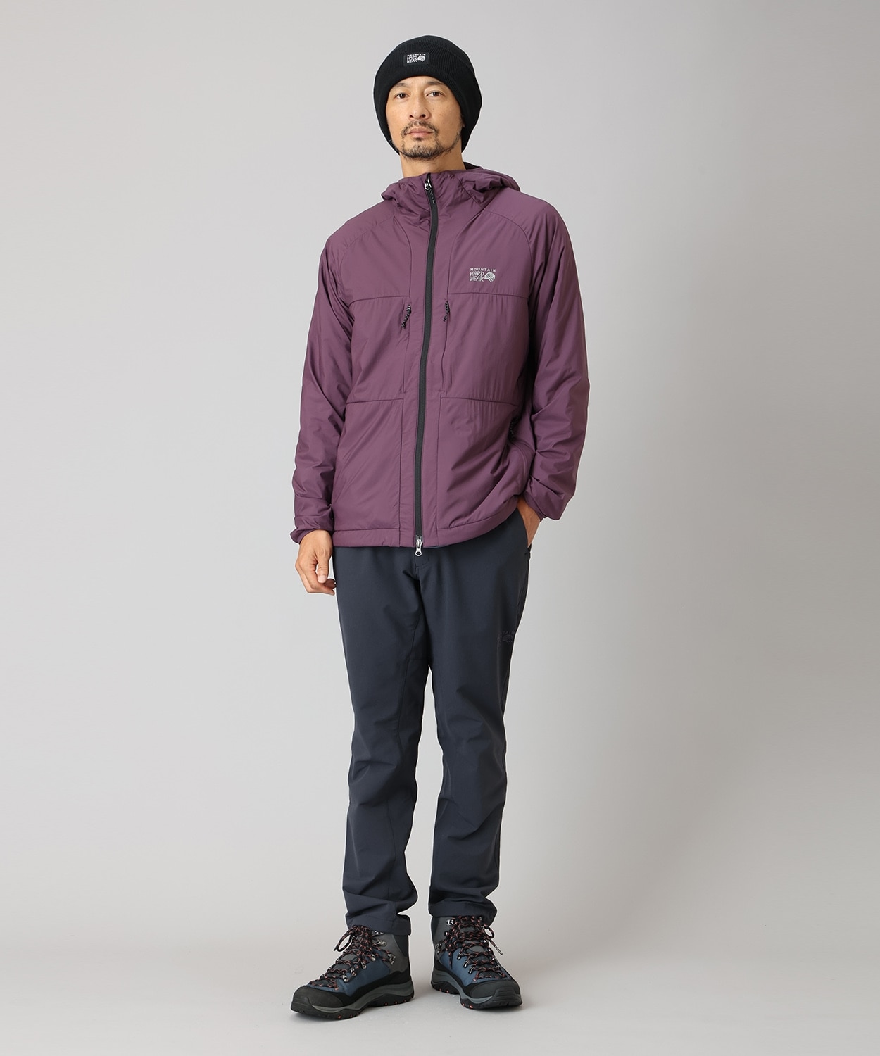 軽量、かつ防風性と通気性に優れたストレッチリップストップ素材Pertex QuantumAirの表地に、適度な保温性と通気性を備えた帝人「オクタ」の裏地を組み合わせました。メッシュ地と起毛面を持つオクタの裏表を使い分け、バックパックで蒸れやすい部分の通気を高める工夫を施しています。アクティブなシーンでもオーバーヒートしにくく、肌寒い日の登りや稜線での保温着として通年で活躍します。