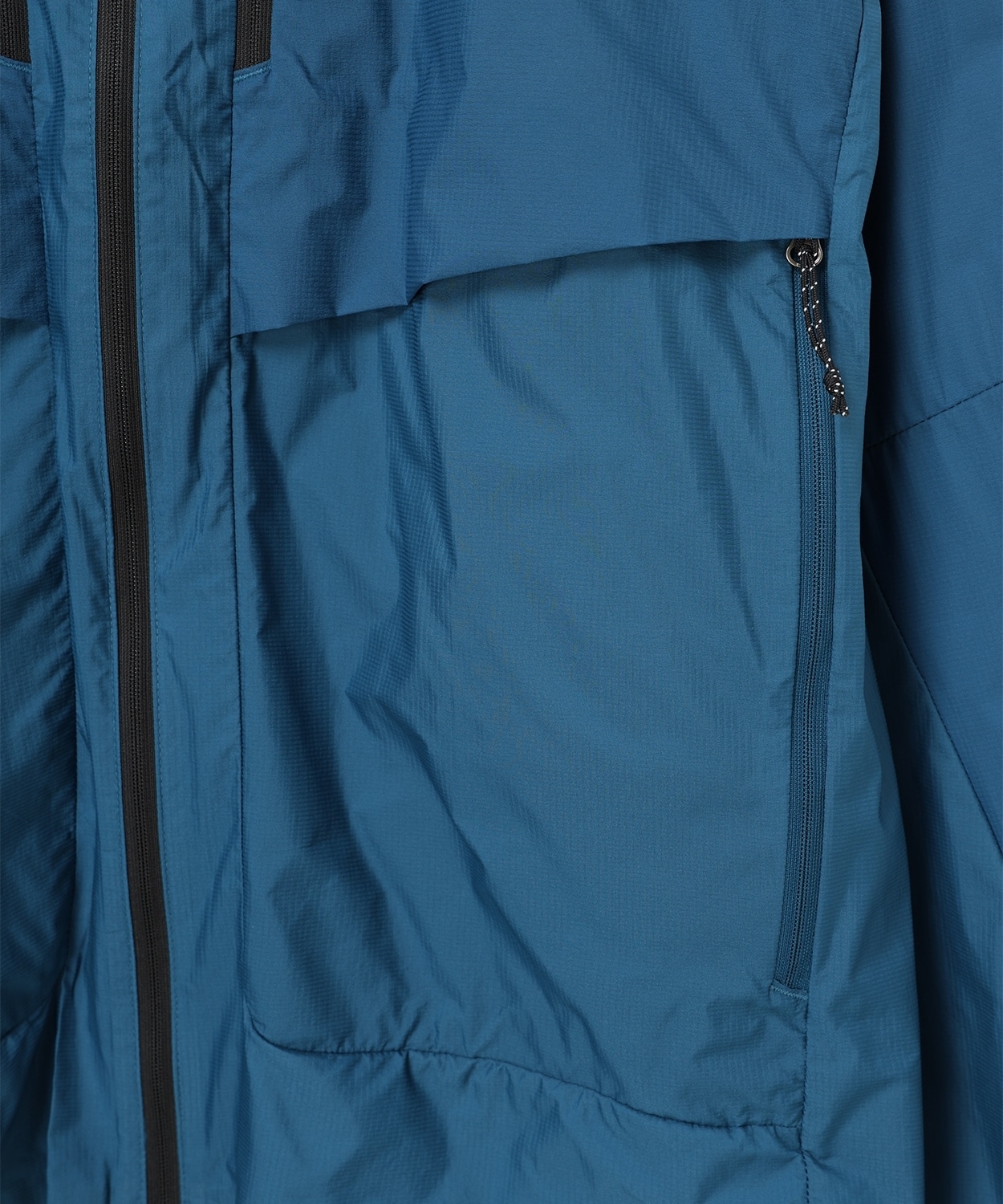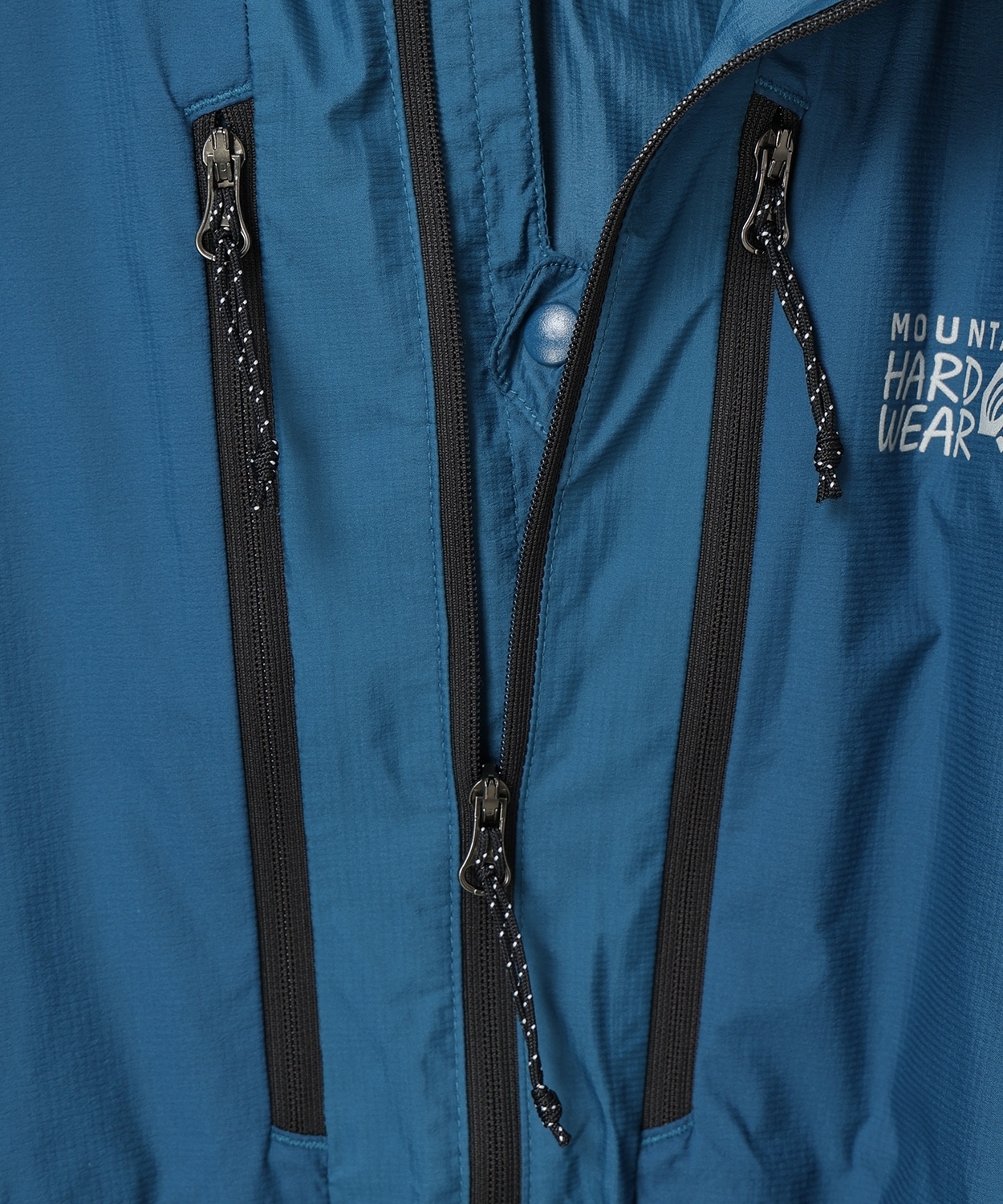 ●ファスナーを開けてもジャケットがばたつかず、最大限の通気を確保できるフロント中央のスナップ付きフラップ