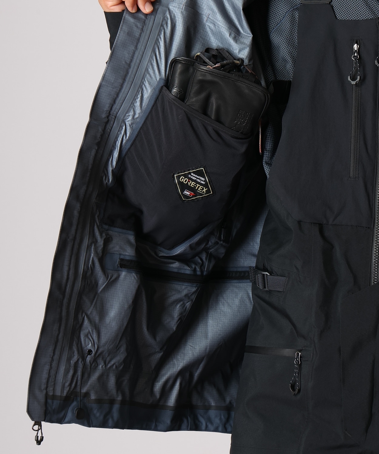 高い防水耐久性、防風性、透湿性を融資、過酷な環境下でのアクティビティにおいて身を守り、快適性を維持します。アルパインクライミングやマウンテンニアリング、バックカントリースキーに最適です。