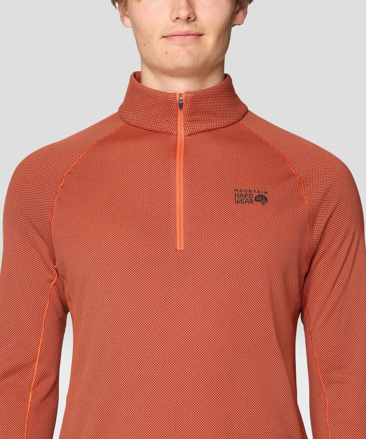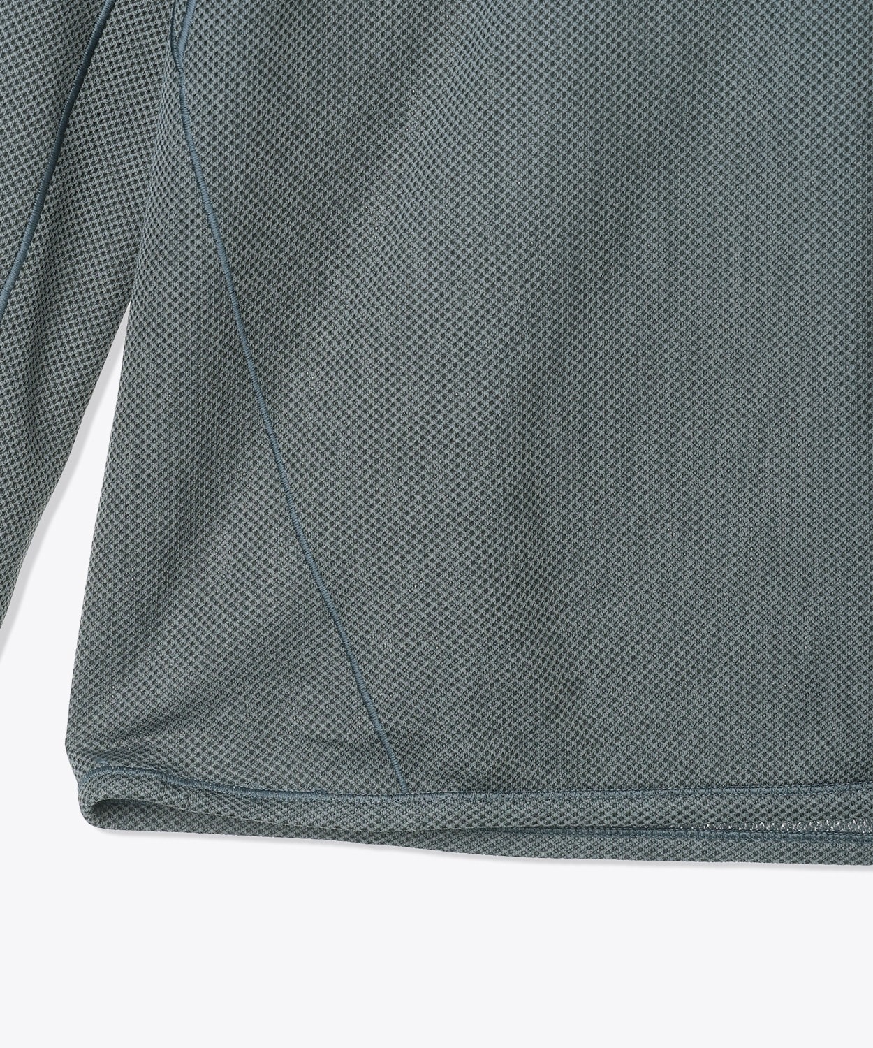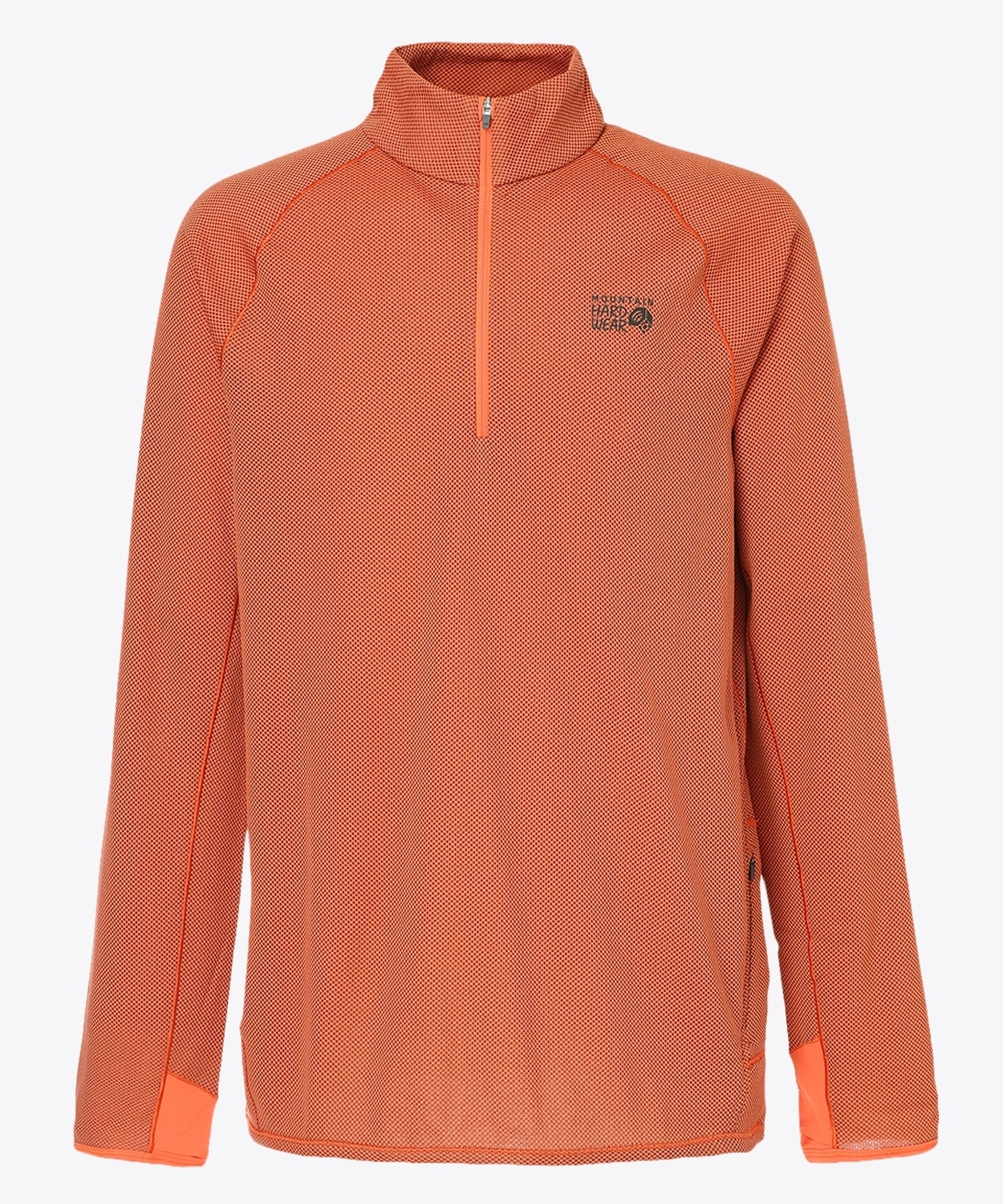 通常の繊維の半分の重さでロフト感と保温性を持たせた特殊構造のポリエステル素材、帝人「オクタ」を使ったロングスリーブ。着脱しやすいハーフジップタイプです。マウンテンハードウェアと帝人の共同開発で、これまでの抗菌効果に加えて消臭効果を新たに追加。前モデルより保温力、耐久性、フィット感を向上させ、秋冬の登山でより使いやすくなっています。登りの際の単体着用や稜線でのミッドレイヤーとしてなど、レイヤリングの可能性を広げる1枚です。
