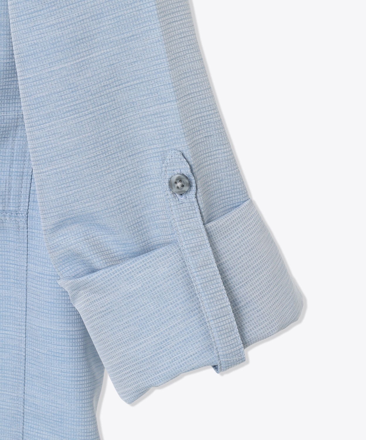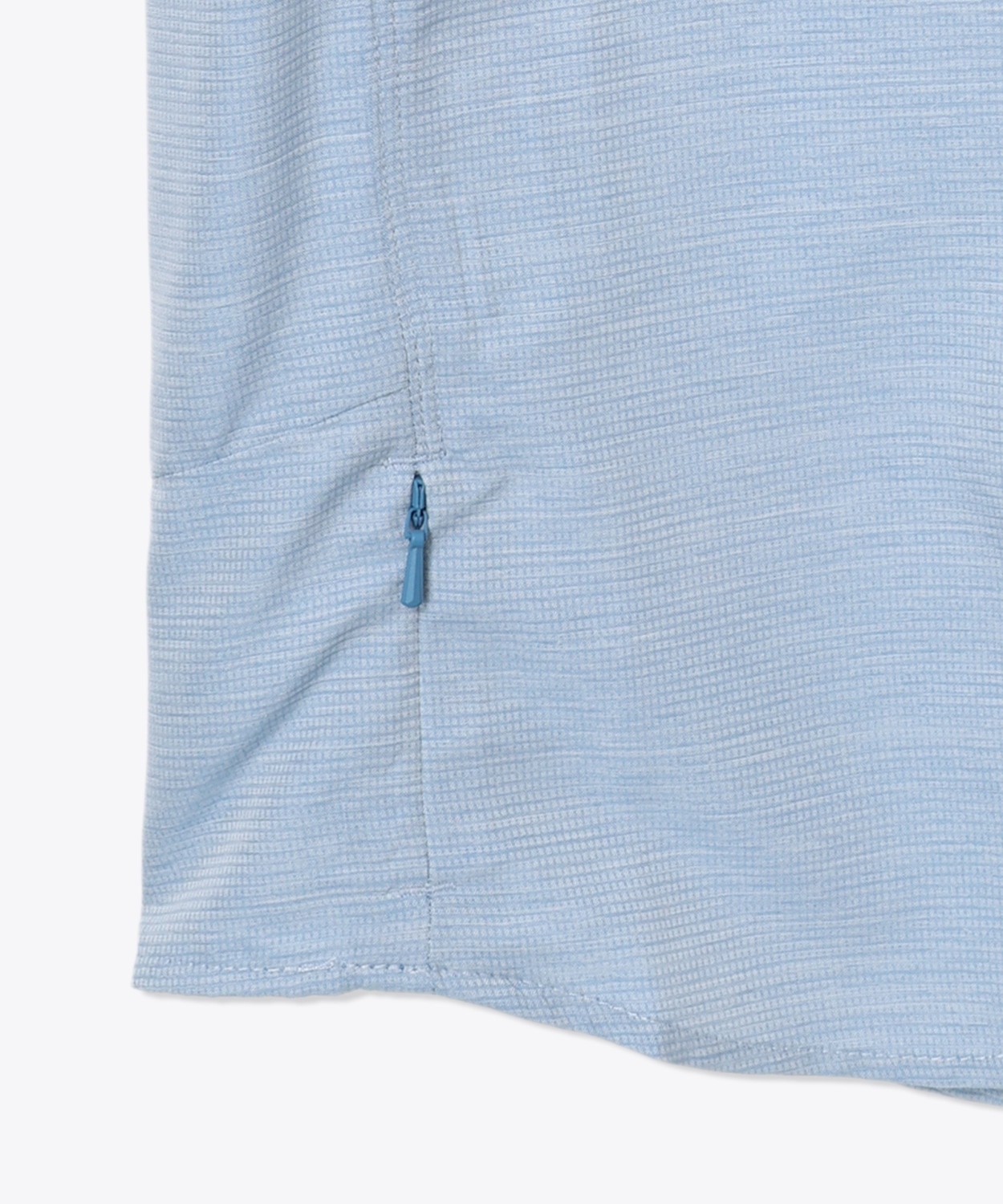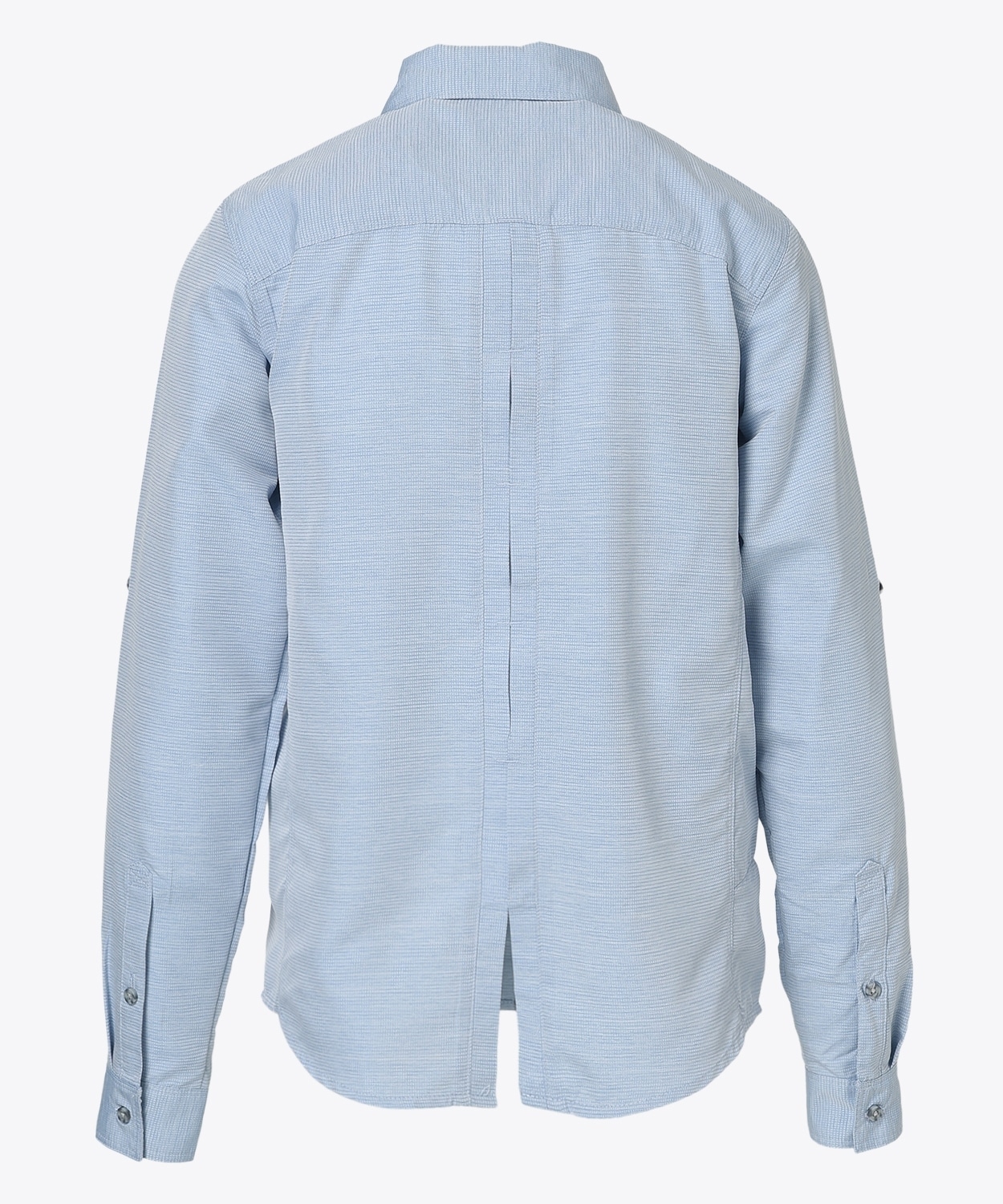 袖をロールアップできる山シャツのベストセラーです。吸湿速乾性に優れたポリエステル100% 素材でサラリと着られ、薄手なのでロールアップしてもごわつきません。背面中央には縦にベンチレーションを配しており、発汗量が多い夏の登山でも快適です。