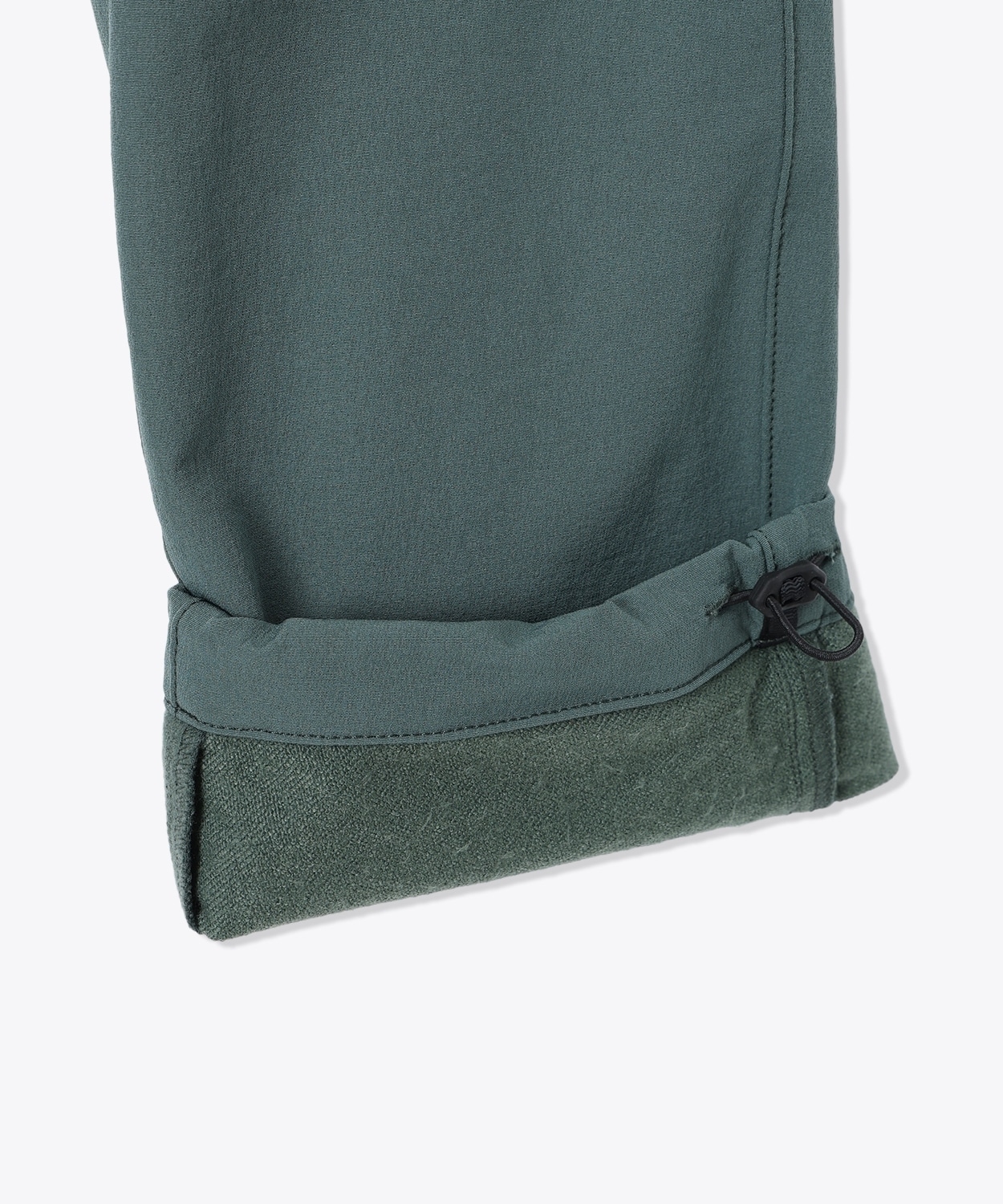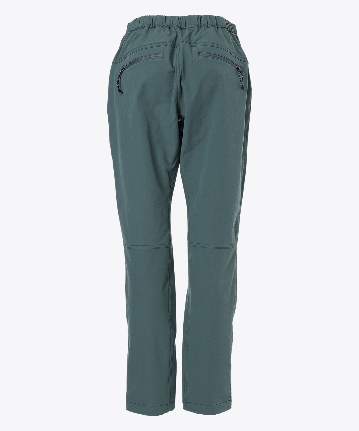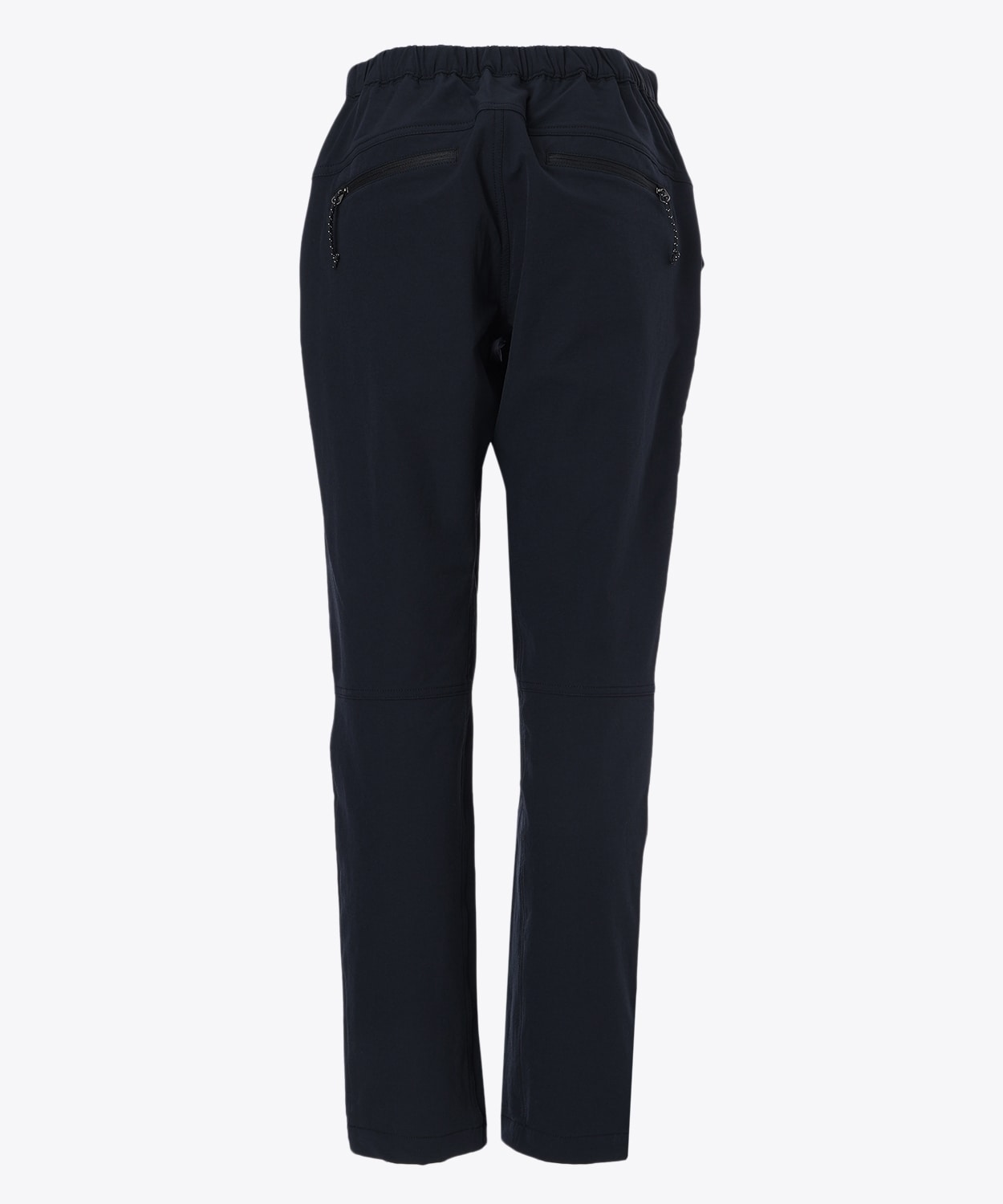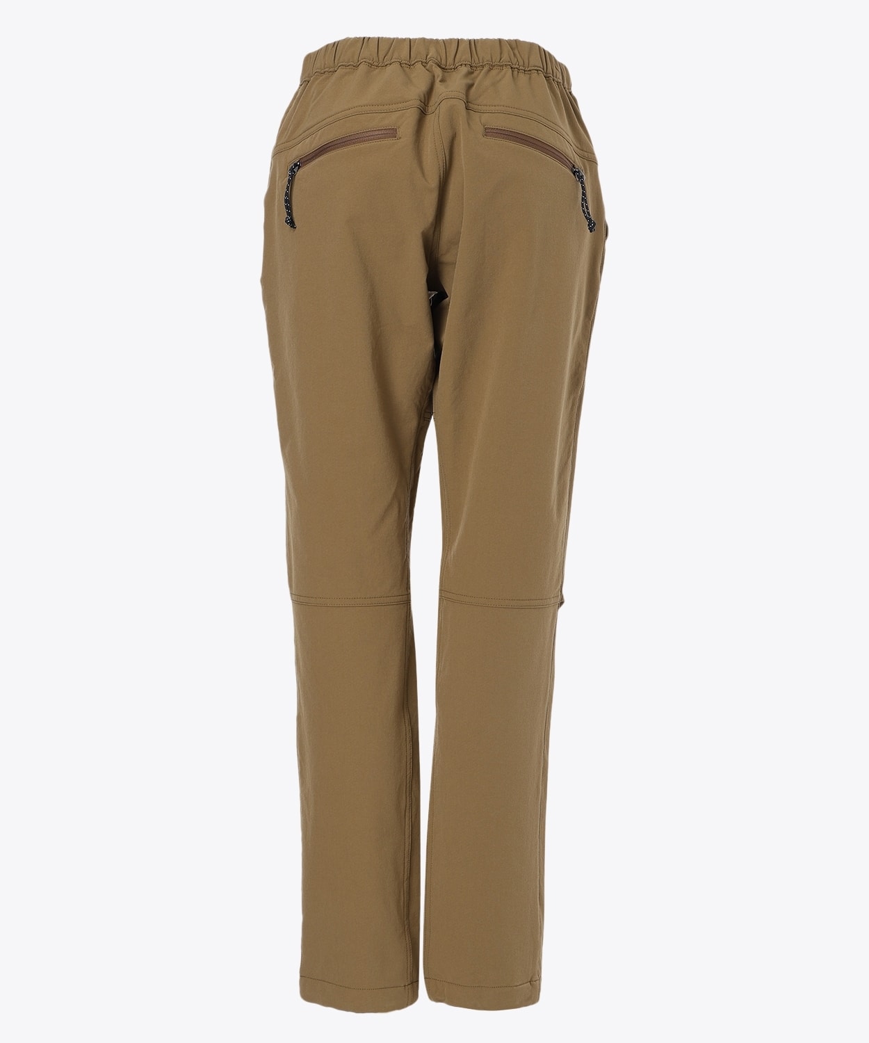厚手のソフトシェル素材で風を防ぎ、裏起毛によって保温する秋冬用のトレッキングパンツです。ヒザの立体裁断と素材自体の伸縮性で足の動きを妨げず、寒い時期のアクティビティに最適。ウエストはゴム仕様で、調節しやすいバックルベルトが付いています。