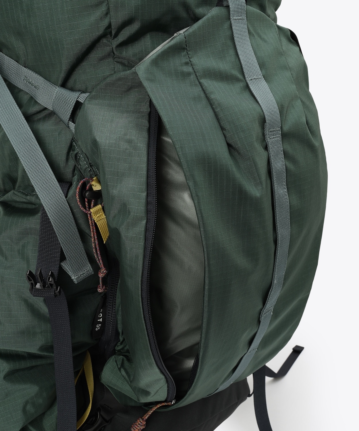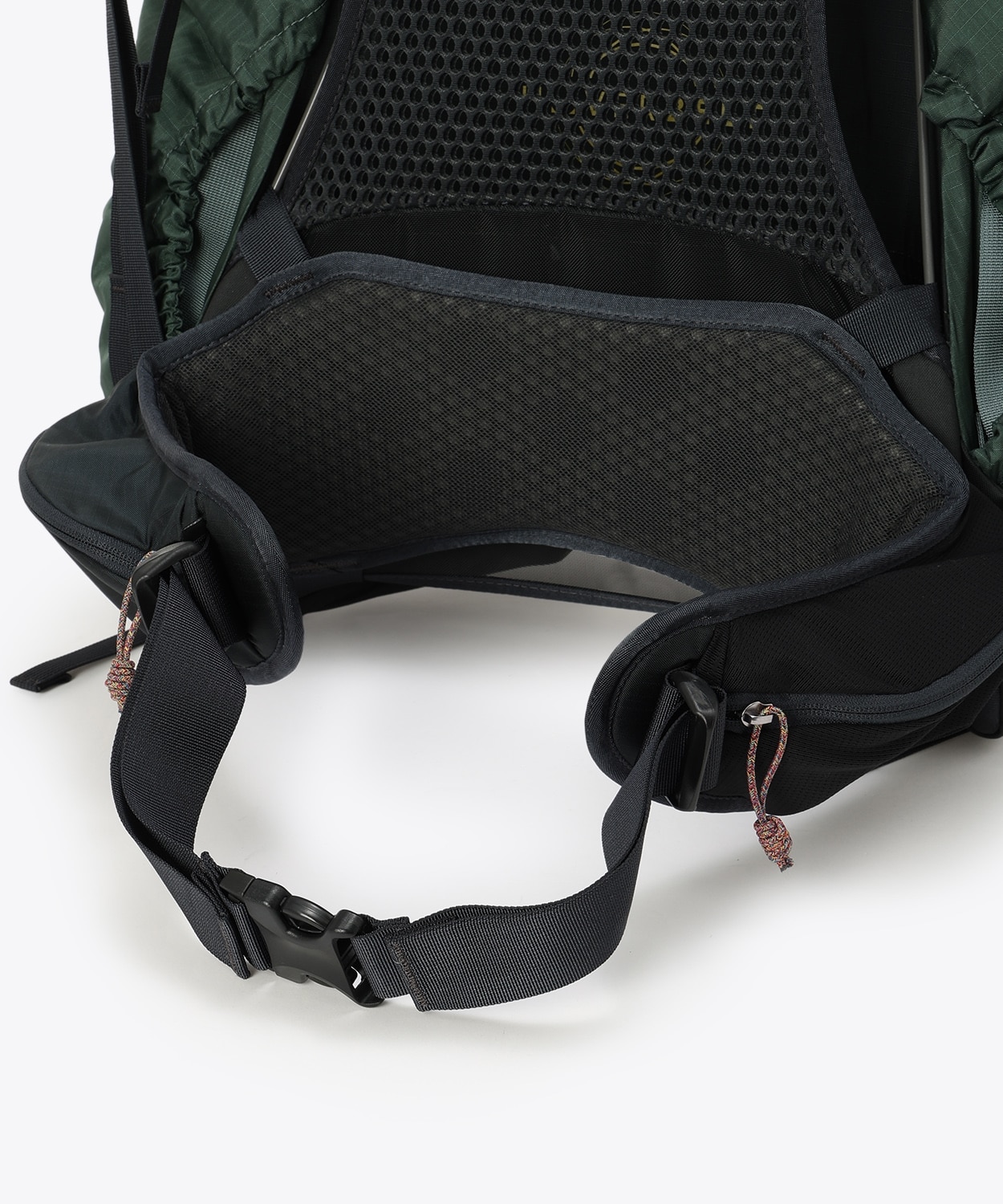 ●ヒップベルトは身体に合わせて3軸で動き、荷物を中央に配置可能