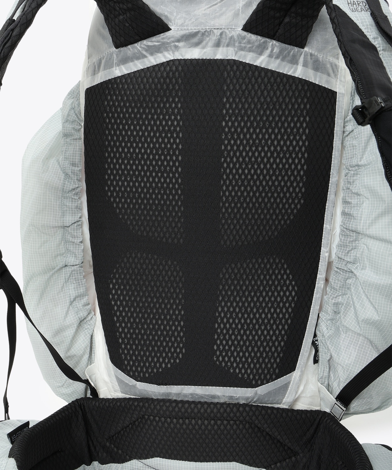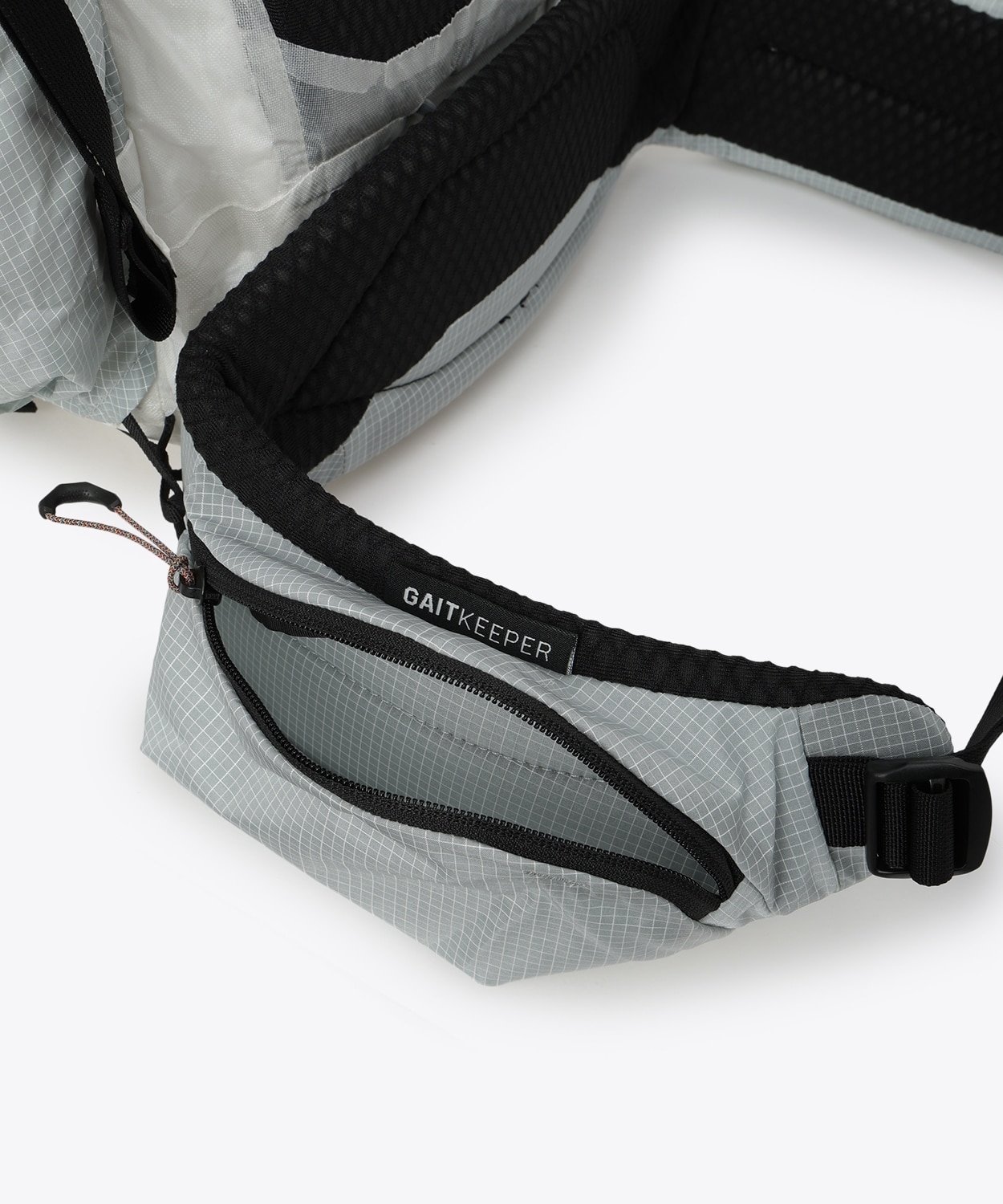 ● Gait Keeper™ヒップベルトのデザインはV字型アルミフレームを内蔵し、荷物の重さを中心点を利用して効率的に分散