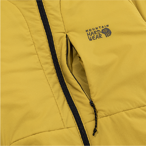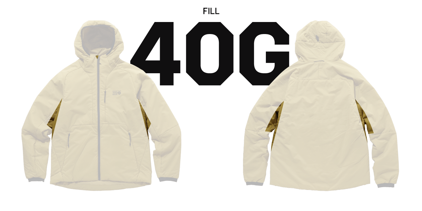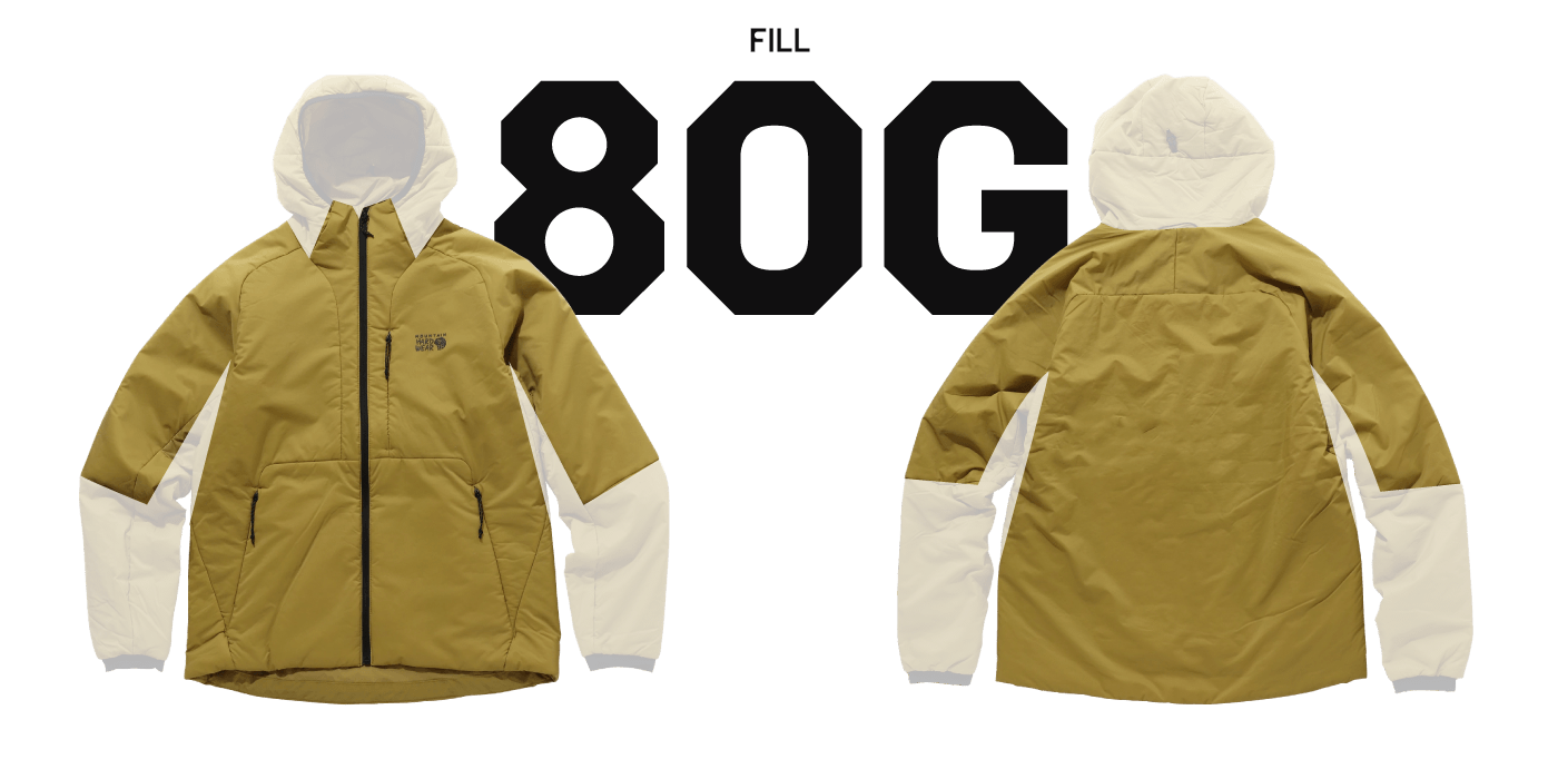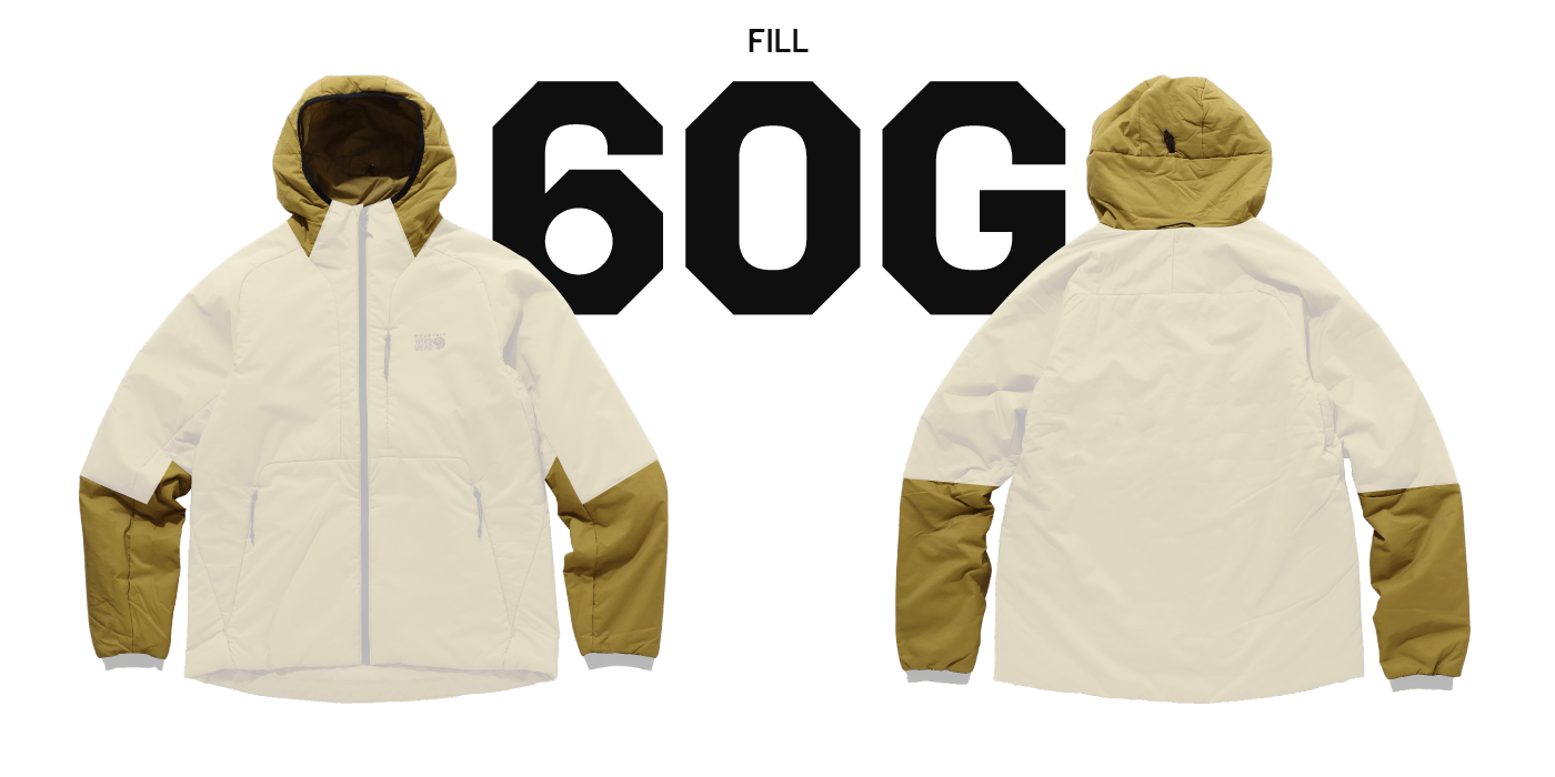 マウンテンハードウェアのアクティブインサレーションは、3つのテクノロジーを主軸に構成。軽量で防風性と通気性、耐久性を備えたシェル素材「Pertex® Quantum Air」、空気のように軽く通気性と保温性を両立する裏地・中綿の一体化素材「Octa®CPCP®」、ダウンに匹敵する保温力がありながら濡れに強い中綿「Primaloft® Gold Active」。それぞれの着用シーンでベストな快適性を提供するために、3つのテクノロジーの組み合わせ方とディテールなど個々のデザイン設計によって、ハイパフォーマンスを発揮する4アイテムを開発しました。