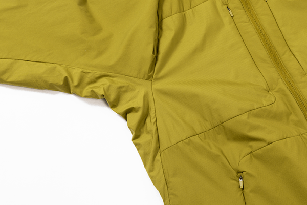 軽量で通気性と防風性に優れたPertex® Quantum Airを表地に使用し、裏地には通気性と保温性を発揮するOcta®CPCP®を使用したエアメッシュを、さらに風を受けて冷えやすい前身頃と袖には保温性に優れた中綿Primaloft® Gold Activeを配置。寒冷期のアクティビティに幅広く対応する優れた機能バランスを備え、また、フードがなく細みのシルエットなのでミッドレイヤーとしても活躍するアイテムです。