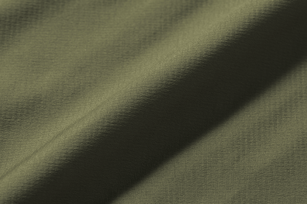 PERTEX®の「カンタムエア」という、高密度に織られた20デニール以下の極細糸で軽量でありながら、引裂き強度と縫い目強度にも優れ、シリアスな状況下でのアクティビティにも耐える画期的なシェル素材を使用しています。通気性と防風性を兼ね備えたストレッチ素材で、有酸素アクティビティ時にウェア内のムレを逃がし、常時着用を可能にします。