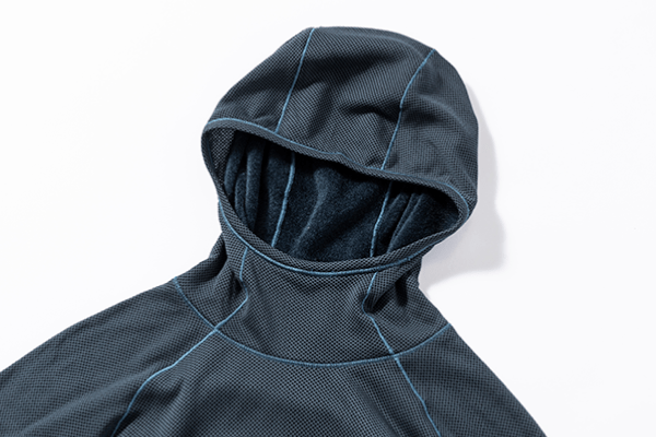 メッシュ面と起毛面の一体化素材Octa®CPCP®を採用し、さらに独自機能を付与。2色の糸を使用することで単体でも着用しやすく、また、目を詰めて毛足を密集させることで保温性と耐久性を向上し、リバーシブル仕様に。消臭効果も備え、汗をかいても爽やかな着用感を持続します。