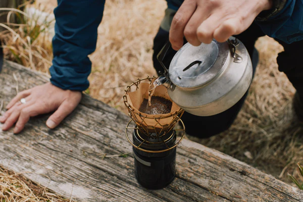 景色を楽しみつつ、甲斐はコーヒーの準備を始めています。