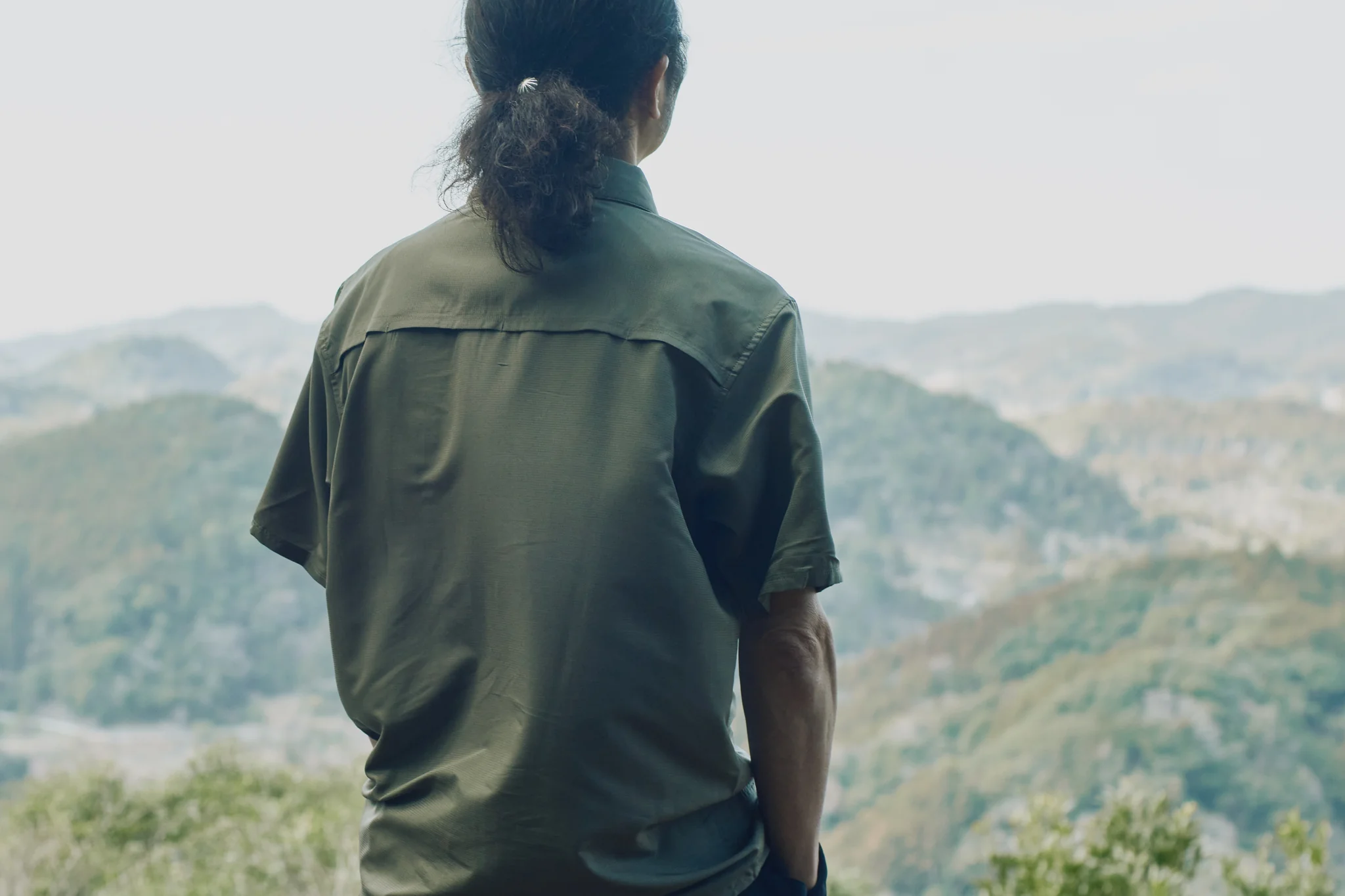 「マウンテンハードウェアのキャニオンシャツといったら、僕の中では名作中の名作です。2000年代の初期から愛用しているシリーズですね。とくに背面のベンチレーションの付け方が良い。さりげなくてデザイン的に目立たないところも好みです。今回のカラーは、僕が今でも持っている2000年頃のカラーリングっぽいですよね。ワッペンとかでカスタムしてもアメリカっぽくて良いかも」