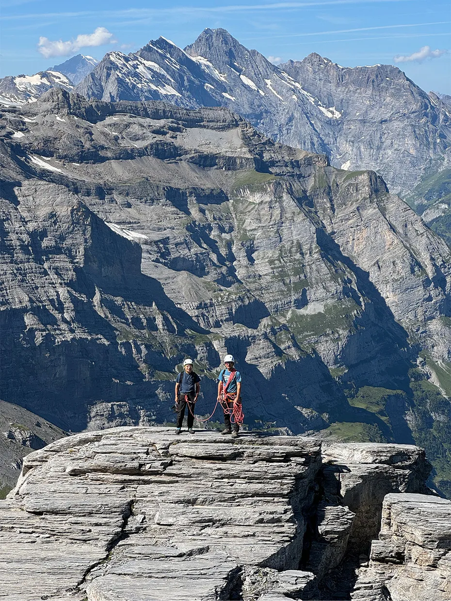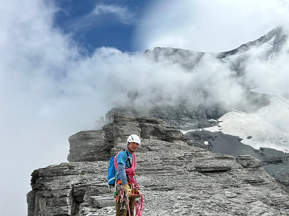 「アイガーは自然的な要因のリスクが高い場所は、モンブランほどはありません。今回は2回登りましたが、稜線上や山頂に雪がなくて、岩の上で記念撮影をしたことがとても印象的でした。