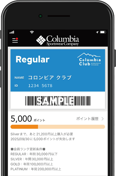 コロンビアクラブは、全国のコロンビアクラブ対象店舗や公式オンラインストアで、ポイント還元や会員限定キャンペーンなどの特典を受けられる会員プログラムです。