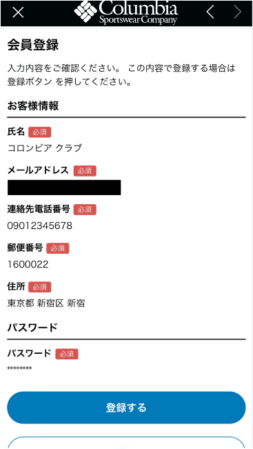 入力した登録内容が表示されます。内容に間違いがなければ「登録する」をタップ。