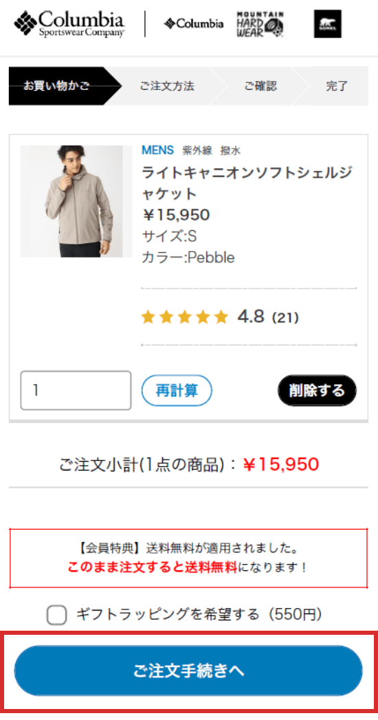 ※注文完了後のお支払い方法変更はできません。コロンビアスポーツウェアオンラインストアではお支払い時の手数料は発生いたしません。