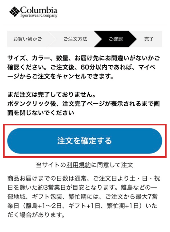 ご注文内容を最終確認して、間違いがなければ「注文を確定する」ボタンをクリックしてください。