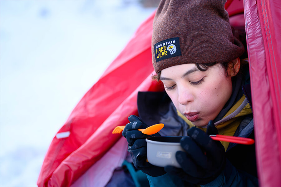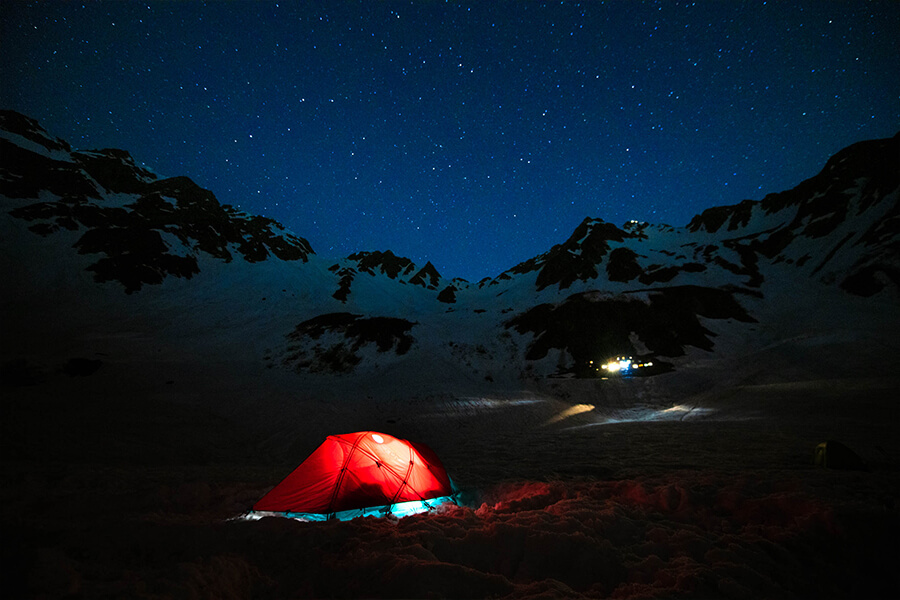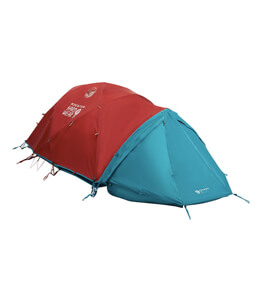 - 冬期のハードなシーンでの使用を想定したダブルウォールテント。交差したポールを組み合わせ、さらに本体・フレーム・フライを固定して一体化させることで強度を高めました。荒天時の強風にさらされても安定して自立します。エクスペディション向けのモデルながらフロア面積が大きく、停滞の際も快適に過ごせます。
