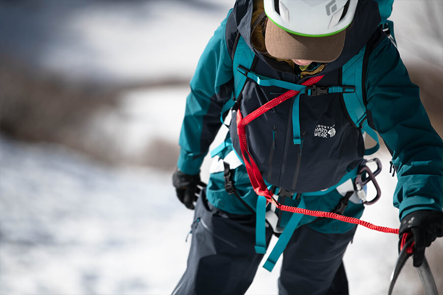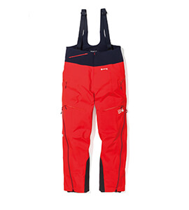 - 高所登山や冬のアルパインクライミングなどをカバーするハイエンドモデル。ビブパンツスタイルなので、深雪のラッセルやパウダーを滑る際も雪が入り込みません。表地は繊維原料を着色することで環境負荷を減らしたソリューションダイ素材を使用。長期間着用しても色褪せません。