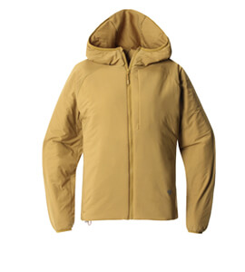 - 軽く、強度があり、ストレッチ性・通気性を持ったバーテックスカンタムエアを表地に使用し、濡れに強く通気性もある化繊インシュレーションPRIMALOFT Gold Activeを封入しました。保湿性がありながら通気もする「行動保湿着」としても運動中も着続けられます。防寒性をやや考慮したフード付きタイプです。