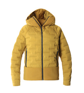 - 見ごろや腕、フードにはスーパーDS構造を用いたダウンを配し、ハーネスと接するジャケット株や発汗量の多い脇下は化繊中綿に切り替えたハイブリッドフーディです。アプローチ時の防寒着やシェルの上に羽織るビレイパーカーなどに。